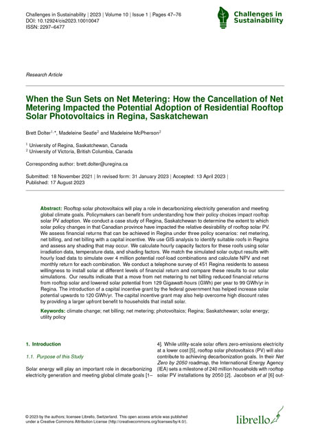 Solar Energy Justice: A Case-Study Analysis of Saskatchewan, Canada