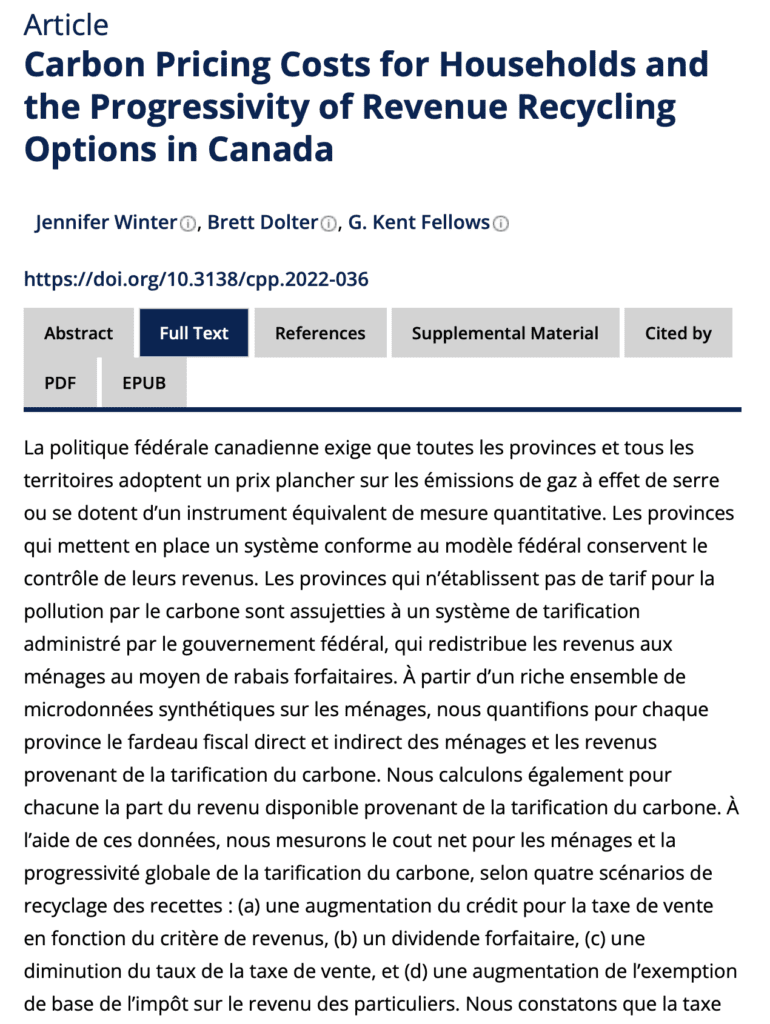 Carbon Pricing Costs for Households and the Progressivity of Revenue Recycling Options in Canada