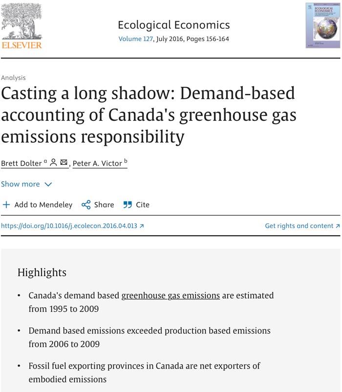 Casting a Long Shadow: Demand-based Accounting of Canada’s Greenhouse Gas Emissions Responsibility
