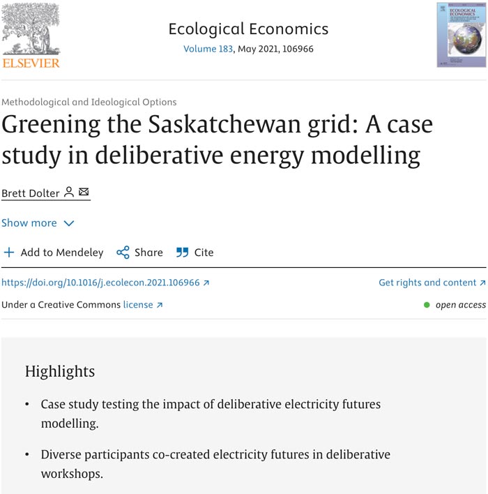 Greening the Saskatchewan Grid: A case study in deliberative energy modelling